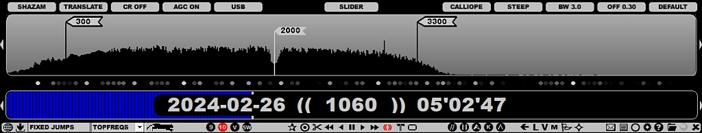 STEEP cleans up more audio frequencies than the BASE mode. The effect of STEEP can be clearly heard in the headphones: audio with STEEP is crispier than in the BASE mode; however, we have lost some audio frequencies beyond the selected audio spectrum limits, but there is also a considerable suppression in the amplitude of the lowest (non-speech) audio frequencies. The filter curve is also much "steeper" at the filter edge than in the BASE mode.