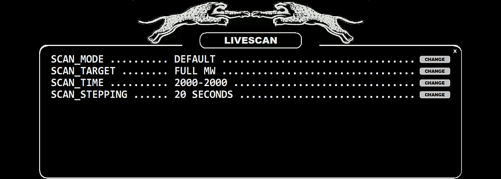 LIVESCAN can be configured by clicking the SLIDER > SCAN button when you are in the LIVE mode (in the ARCHIVE mode this button triggers the FILESCAN settings).