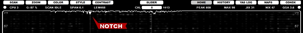 The notch can be seen as a triangle if SETTINGS > GRAPHICS > AUDIO_ON_TOP has been enabled. The notch can be removed by clicking that triangle and new notches can be added by clicking any position (usually on a stable het peak) on that audio curve.