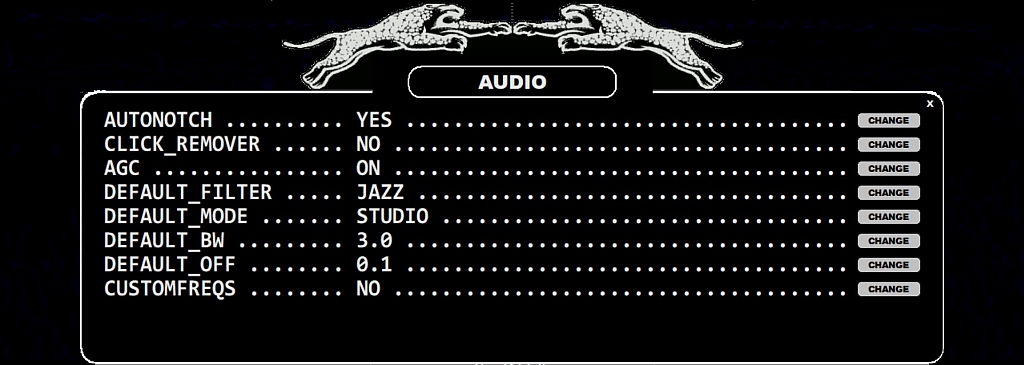 JAGUAR's basic SETTINGS are controlled in the SETTINGS dashboard which consists of two panels, the left and right panel ("KIT" and "KAT").