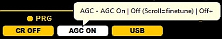 AGC OFF+ is a special, "semi-locked average" mode which combines the best of the ON and OFF modes. Normally, AGC OFF would require constant tuning for the optimal gain level for each frequency, and this is where the semi-locked gain values come in.