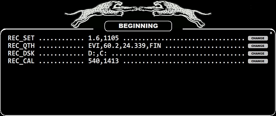 This setting window can also be opened directly from INFOBOX by clicking "CHANGE" on the REC SET, REC QTH or REC DISK rows (changing REC DISK requires the LIVE mode to be active).