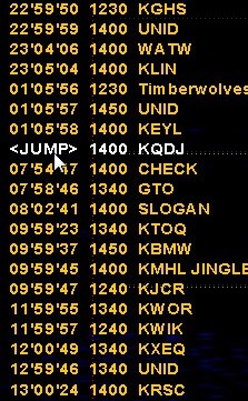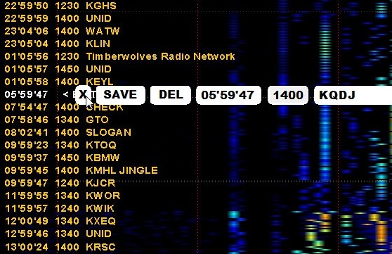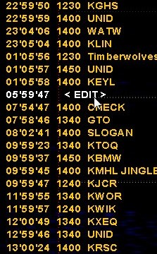 The DAY.LOG contents can be shown on every graphics display as a text overlay on the left edge of the display. The contents can be scrolled up/down, you can quickly jump to any frequency/timespot listed in DAY.LOG, and you can also use a handy small editor to change the data for any DAY.LOG row.
