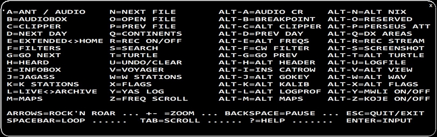 These ALT-shortcut keys are available only for JAGUAR PRO, except ALT-D (PREVIOUS DAY), ALT-G (GO PREVIOUS), ALT-O (FILEPOOL), ALT-P (PERSEUS ATTENUATION), ALT-Q (PREVIOUS CONTINENT) and ALT-X (CONDX).