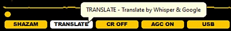 The TRANSLATE function can be used for speech signal processing to identify the language and to transcript and translate it to English. TRANSLATE is powered by OpenAI Whisper, which is the latest technology for speech-to-text processing. This technology is developing rapidly, not yet fully mature, but already now it can sometimes offer enormous help in MW DXing.