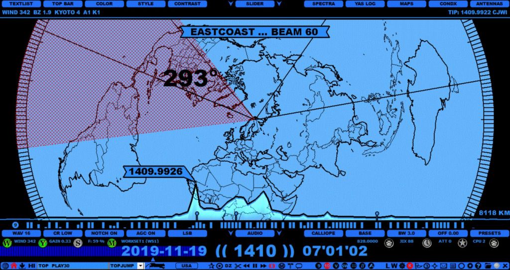 The ANTENNAS map can be shown by pressing the "A" key, or by clicking SLIDER > ANTENNAS. You can return to the original display by pressing "A" once again.