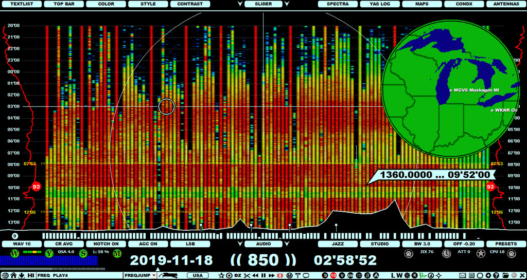 If you move the mouse cursor away from the selected station, the circle turns black, and the scrolling mode changes: now you can scroll the frequencies on the station list on the left, or you can click directly on any station name on the list.