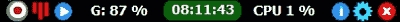 By default, the status area at the center shows the disk status (space used % on the recording disk), real time in UTC and the CPU used %. The color behind the real time shows the status of the PERSEUS SDR: