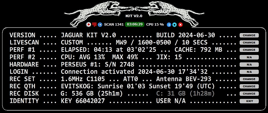 JAGUAR KIT is the latest novelty in the JAGUAR software portfolio for the PERSEUS SDR. JAGUAR KIT takes care of all the background services needed for successful MW DXing. You can analyze the recorded files with your favorite SDR software but you can get the most out from the files with JAGUAR LITE/PRO. You can download the latest JAGUAR LITE/PRO software package from ourdownload site. By default, the JAGUAR software runs in the LITE mode but if you want to become a PRO user, and have fun with the HOTTEST MW SOFTWARE EVER, please send an email to jaguar4perseus at gmail.com for more information.