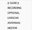 Clicking the SETTINGS button launches the SETTINGS menu with five options: RECORDING, OPTIONAL, LIVESCAN, ANTENNAS and MESTOR.